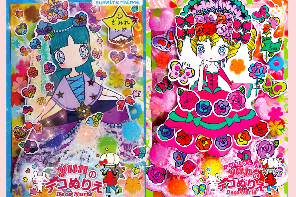 デコぬりえ®は、ぬりえを好きな色に塗り、コラージュやデコレーションして作る立体的なアート作品。