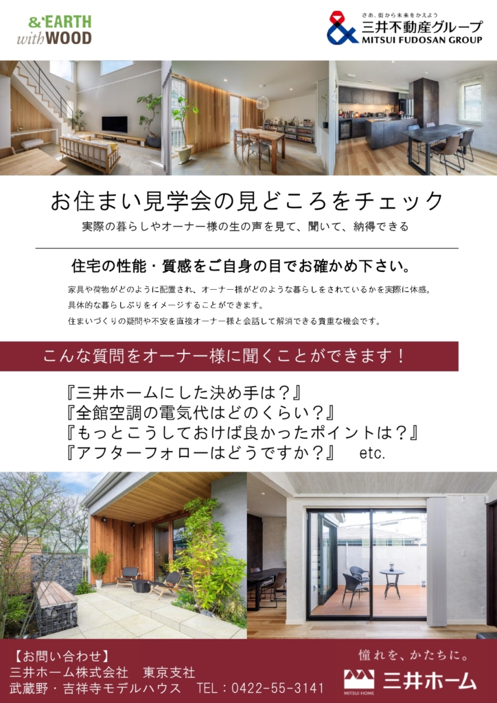 三井ホーム実際に住んでいるオーナー様の暮らしぶりを体感できる貴重な見学会です!