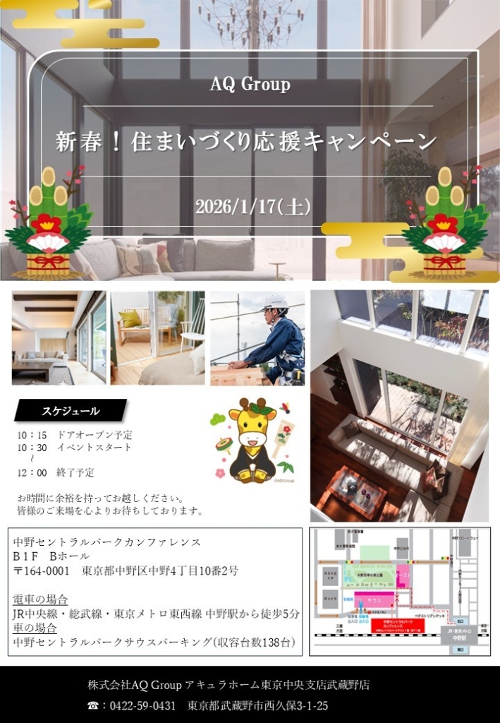 AQURA HOMEアキュラホームでは、1月17日(土)に