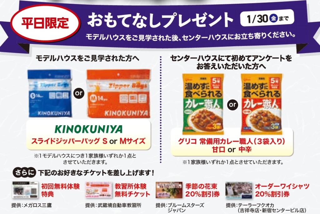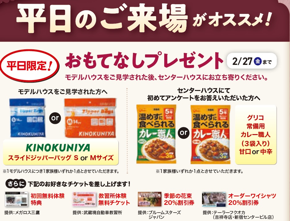 平日にご見学の方 限定!おもてなしプレゼント
