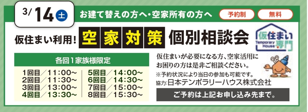 3.14(土) 仮住まい利用!空家対策個別相談会