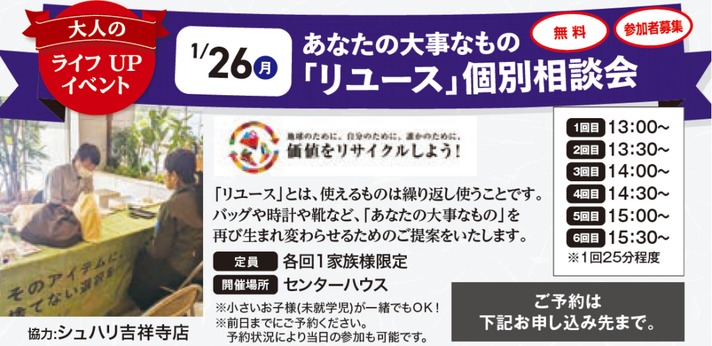 1.26(月) あなたの大事なもの「リユース」個別相談会