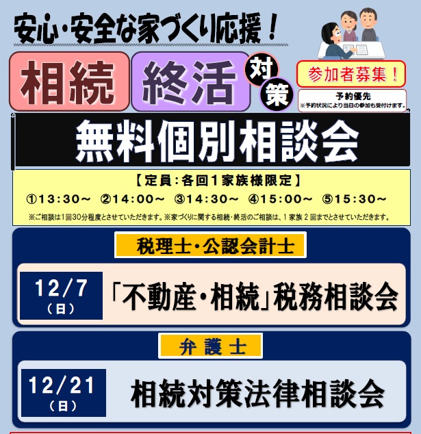 ※家づくりに関する相続・終活のご相談は、1家族様2回までとさせていただきます。